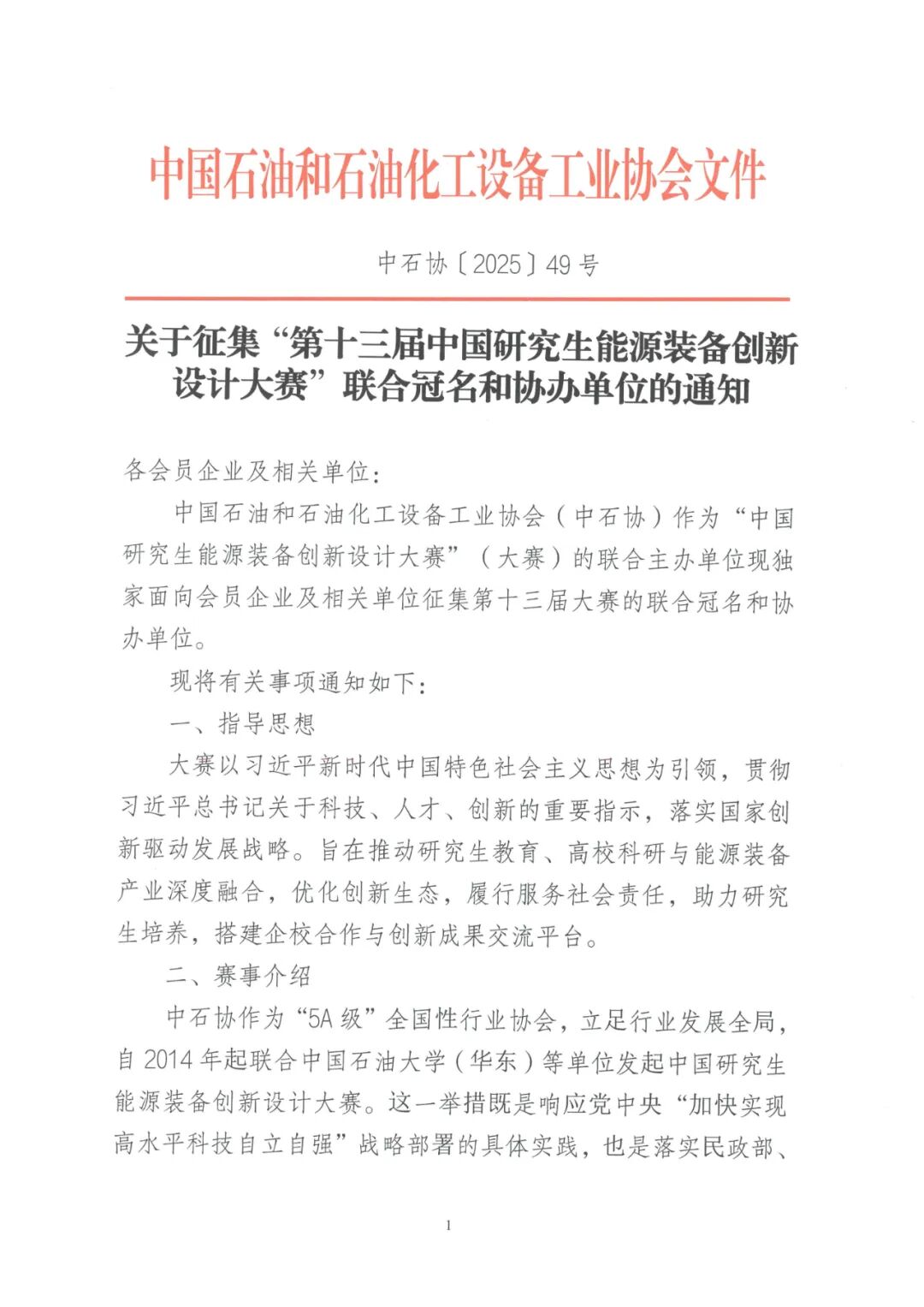 关于征集“第十三届中国研究生能源装备创新设计大赛”联合冠名和协办单位的通知