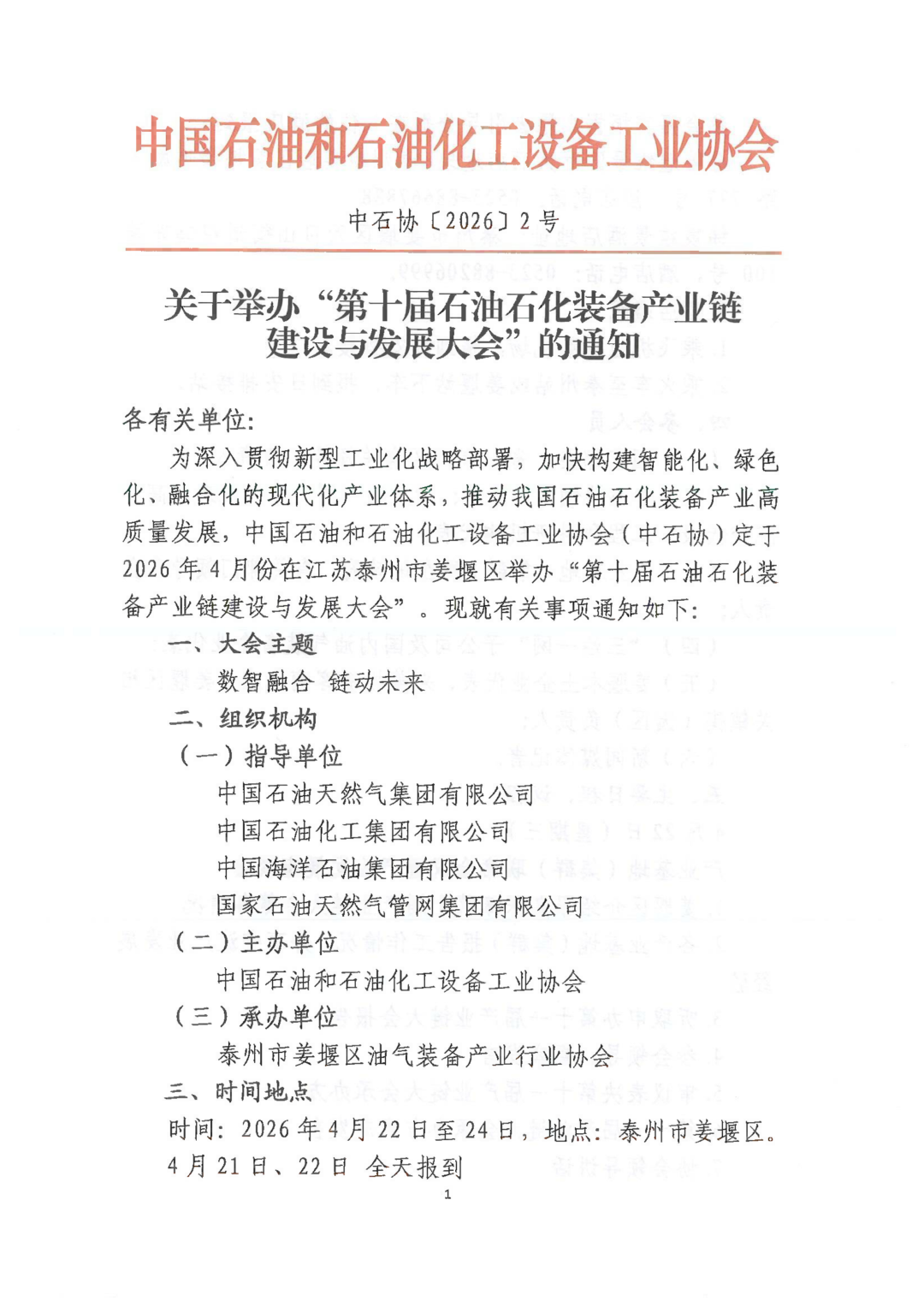 关于举办“第十届石油石化装备产业链建设与发展大会”的通知