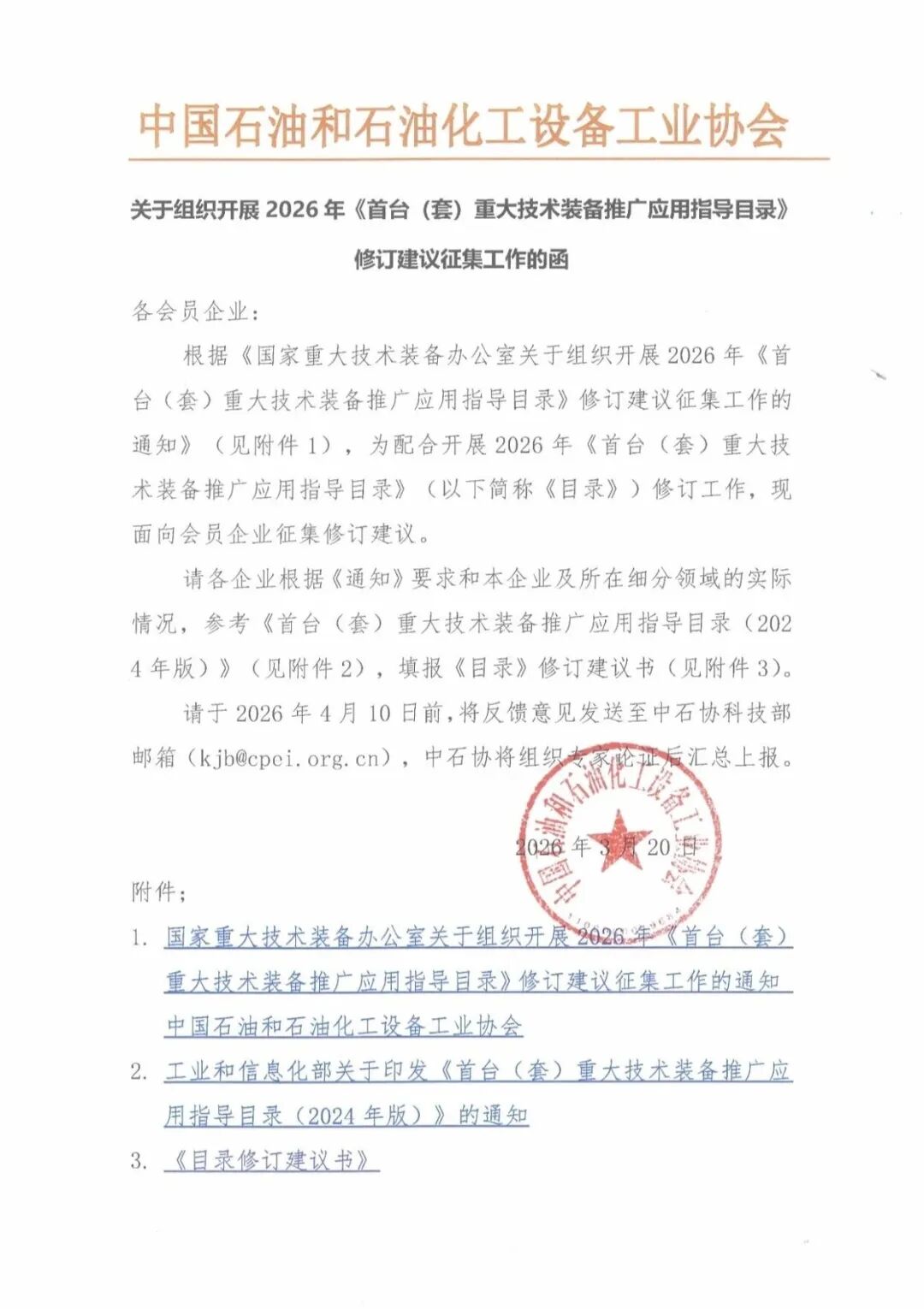 关于组织开展2026年《首台(套)重大技术装备推广应用指导目录》修订建议征集工作的函